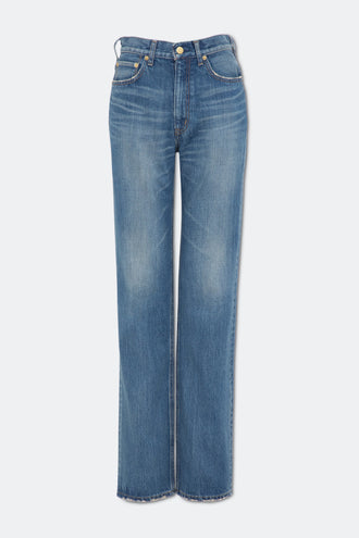 The Labradorite Jean is a sophisticated update to a classic straight-leg silhouette. Expertly designed to give a flattering, elongated look, this high-rise style is fitted through the hips and thighs and cut straight through the legs. Each hand-finished pair is detailed with signature gold plated buttons and a custom buttonhole stitch in labradorite.