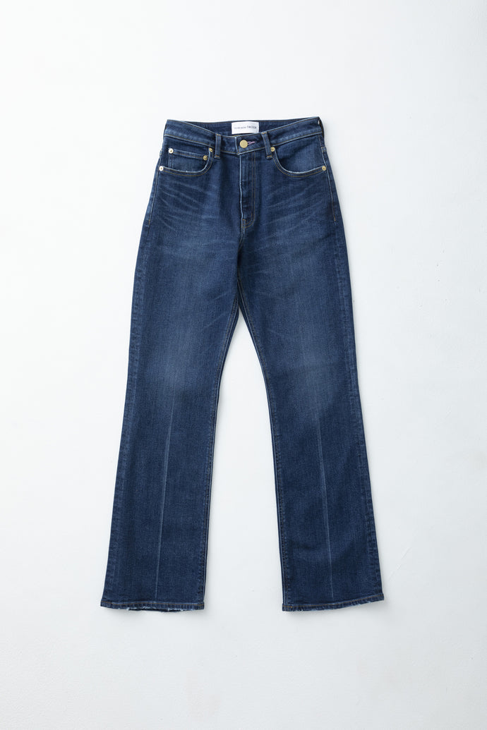 The Sapphire Jean has a high-rise with a straight-leg which makes for an ultra-flattering slimming silhouette. This stovepipe-fit silhouette is crafted from Japanese stretch denim that lets the body move freely. Each hand-finished pair is detailed with signature luxurious gold plated buttons and a custom buttonhole stitch in sapphire.